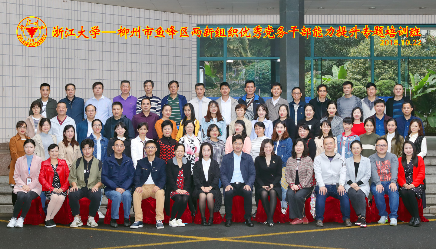 10月21日至27日,柳州市魚峰區(qū)兩新組織黨工委聯(lián)合浙江大學(xué)舉辦的“柳州市魚峰區(qū)兩新組織優(yōu)秀黨務(wù)干部能力提升專題培訓(xùn)班”在浙江大學(xué)華家池校區(qū)舉行。魚峰區(qū)委組織部副部長、兩新組織黨工委副書記唐旭帶隊,育才黨支部書記、集團(tuán)董事長蔣華和魚峰區(qū)兩新組織黨組織書記、黨務(wù)干部共60余人參加了培訓(xùn)。