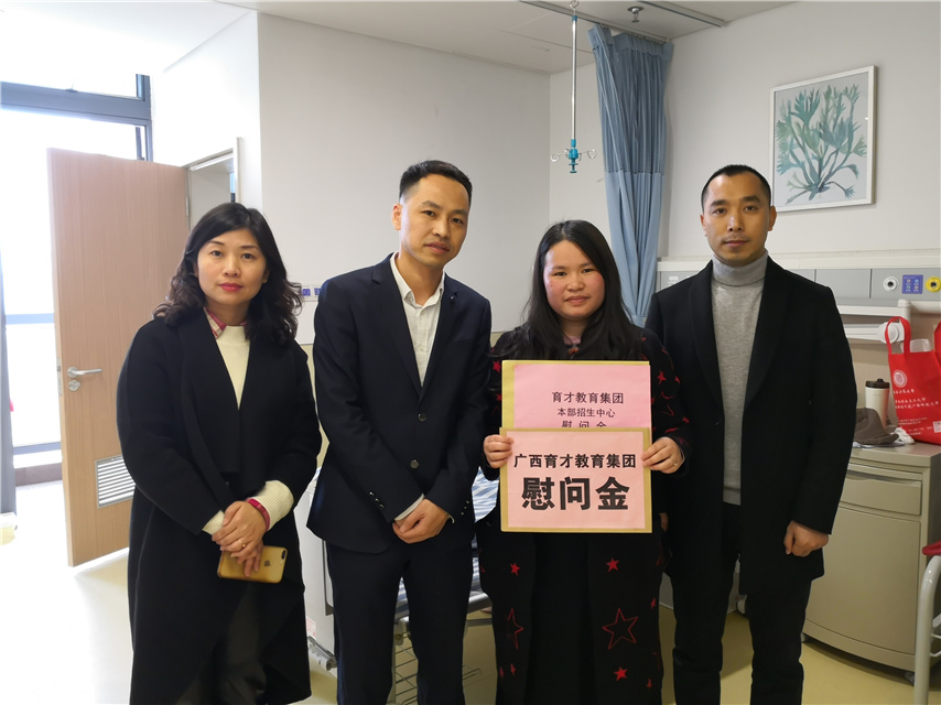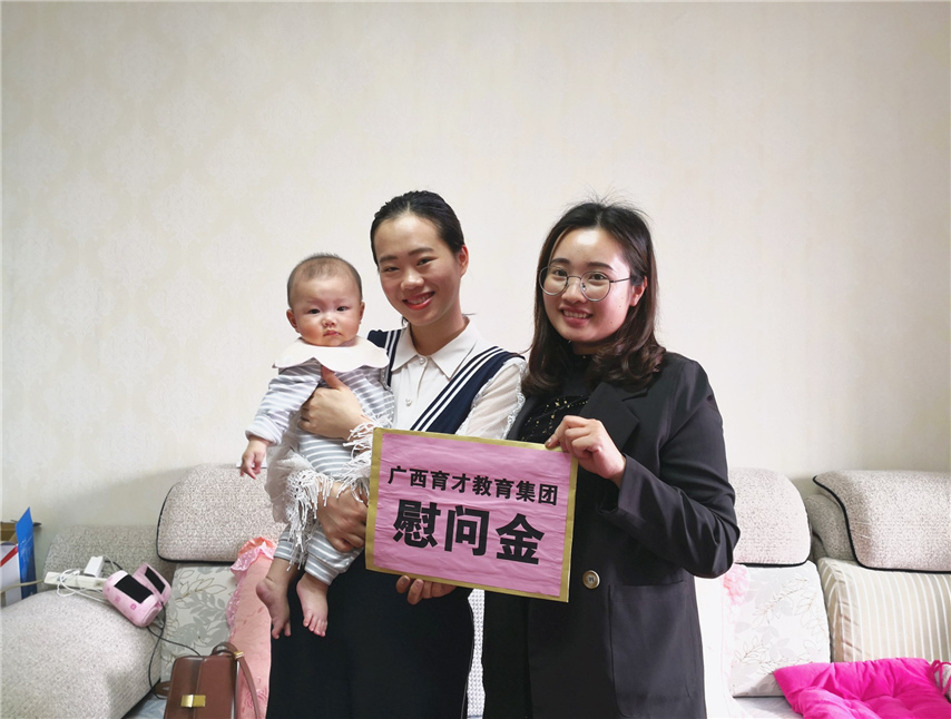 近日,廣西育才教育工會代表一行探望慰問了產(chǎn)婦職工李嬋、梁立麗、因病住院的職工黃慧婷,把慰問金和全體教職工的祝福送到她們手中,為她們送去關懷和溫暖。