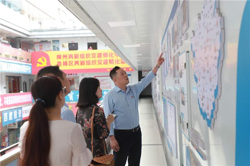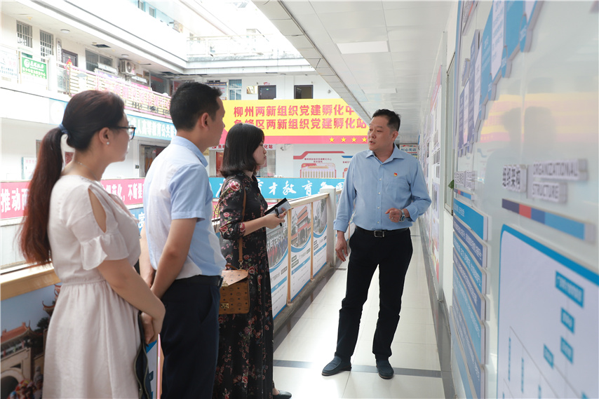 榮瑤記者實地參觀了柳州市兩新組織黨建孵化中心和魚峰區(qū)兩新組織黨建孵化站的研習室、培訓室、實操室等六大主題功能室,并著重對“孵化站”如何實現(xiàn)孵化黨員、孵化黨組織、孵化黨建品牌活動等運作模式進行詳細了解。