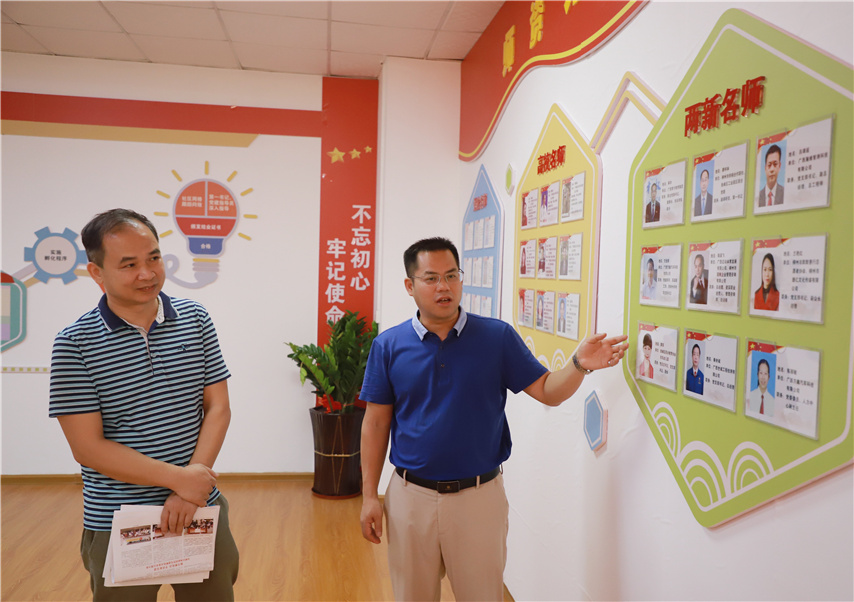 ▲城中區(qū)總工會黨組書記、副主席全偉誠(中)、副主席駱鈺(左一)參觀育才辦學(xué)環(huán)境