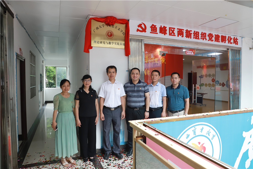 7月12日,廣西大學(xué)馬克思主義學(xué)院理論研究與教學(xué)實(shí)踐基地揭牌儀式在柳州兩新組織黨建孵化中心和魚峰區(qū)兩新組織黨建孵化站隆重舉行。廣西大學(xué)馬克思主義學(xué)院黨委書記周瑞超、副處級(jí)組織員冷相宜、柳州市委組織部組織四科科長(zhǎng)池福波、魚峰區(qū)委組織部副部長(zhǎng)于俊發(fā)、魚峰區(qū)兩新組織黨工委副書記莫翔芬、廣西育才教育集團(tuán)聯(lián)合黨委書記蔣華出席參加了揭牌儀式。