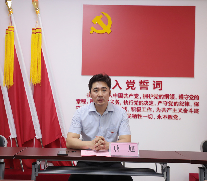 ▲魚峰區(qū)委組織部副部長、區(qū)兩新黨工委副書記、魚峰區(qū)兩新組織黨建孵化站副站長唐旭作開班講話