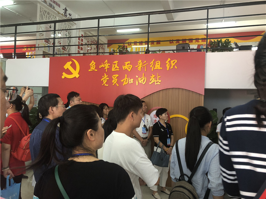 ▲現(xiàn)場教學(xué):參觀“黨員加油站”