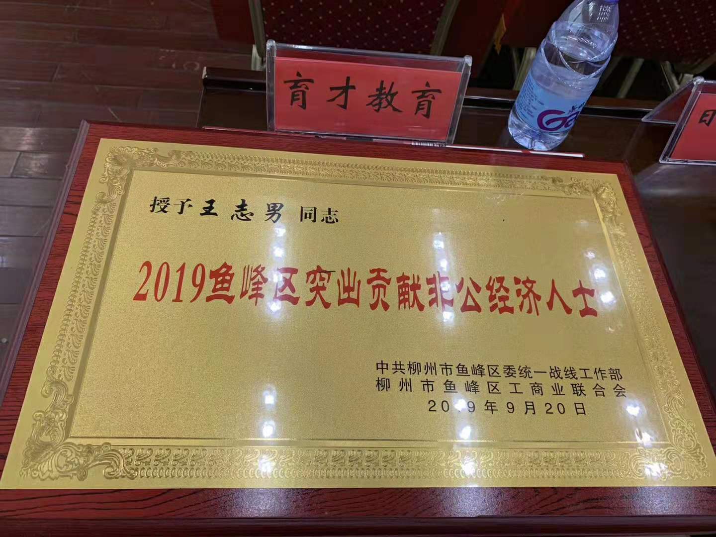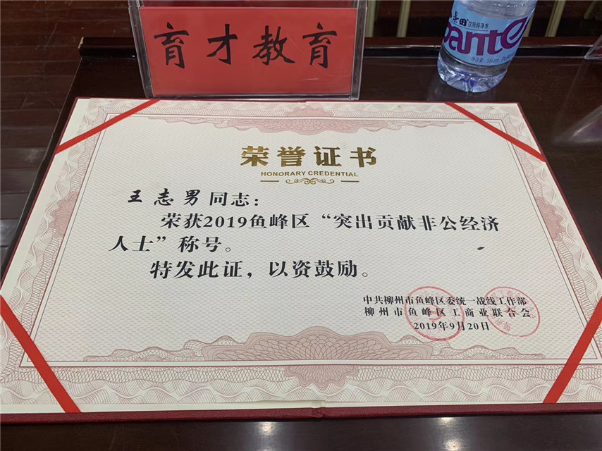 9月20日下午,魚(yú)峰區(qū)“百家優(yōu)秀民營(yíng)企業(yè)和百名突出貢獻(xiàn)非公經(jīng)濟(jì)人士”表?yè)P(yáng)大會(huì)暨發(fā)展壯大民營(yíng)經(jīng)濟(jì)動(dòng)員大會(huì)在柳州市魚(yú)峰區(qū)政府召開(kāi),會(huì)上,魚(yú)峰區(qū)委書(shū)記唐作斌等區(qū)委領(lǐng)導(dǎo)對(duì)非公經(jīng)濟(jì)作出的貢獻(xiàn)給予了高度評(píng)價(jià),并對(duì)今后的非公經(jīng)濟(jì)發(fā)展方向等作了重要講話,會(huì)議對(duì)轄區(qū)優(yōu)秀民營(yíng)企業(yè)和百名突出貢獻(xiàn)非公經(jīng)濟(jì)人士進(jìn)行了表彰。育才集團(tuán)聯(lián)合黨委副書(shū)記、副總經(jīng)理王志男榮獲“2019魚(yú)峰區(qū)突出貢獻(xiàn)非公經(jīng)濟(jì)人士”榮譽(yù)稱號(hào)。