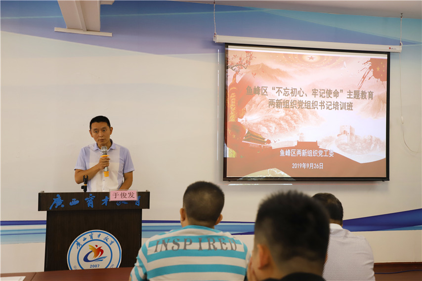魚(yú)峰區(qū)委組織部副部長(zhǎng)于俊發(fā)作開(kāi)班講話。于俊發(fā)副部長(zhǎng)在培訓(xùn)班上對(duì)參加培訓(xùn)班的學(xué)員提出三點(diǎn)要求:一是深刻領(lǐng)會(huì)開(kāi)展主題教育的重大意義;二是踐行初心確保主題教育的預(yù)期成效;三是貫徹落實(shí)形成主題教育的良好氛圍。