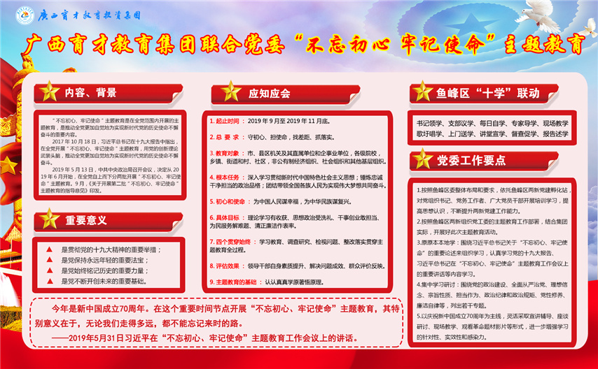 廣西育才教育集團聯(lián)合黨委“不忘初心、牢記使命”主題教育