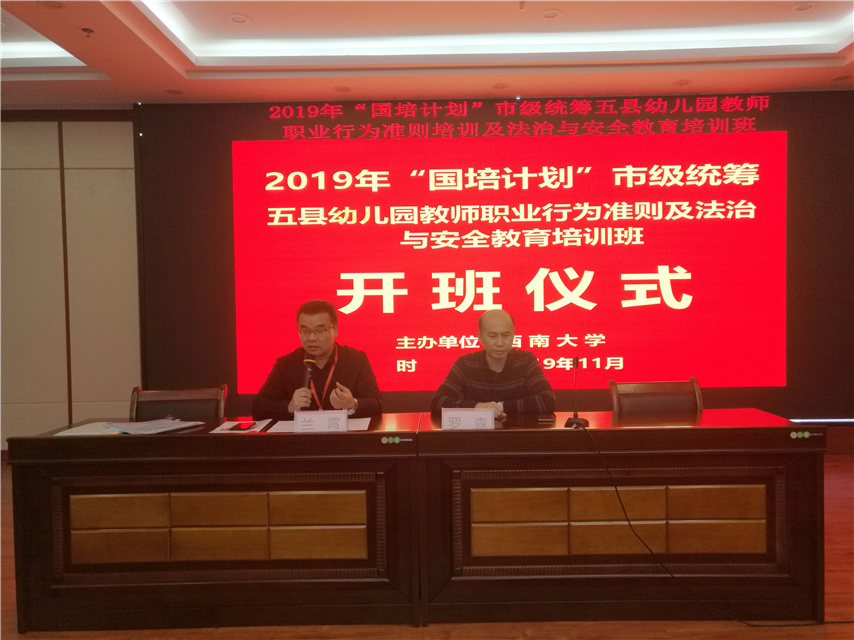 11月2日???,?為期2天的2019?????年???“?????國?????????培?????計?????劃???”?????市?????????級?????統(tǒng)?????????籌????五?縣??幼??兒??園??教??師?職?業(yè)?行?為?準?則?培?訓?及?法?治?與?安?全?教?育?培??訓??在?????融水順利開?????????班???,????柳州市教師培訓與學生素質教育中心??書記羅森出席開班儀式并作講話,來自柳江區(qū)、融水縣的400余名?????幼??兒??園??教師?????參?????????加?????了開班儀式,儀式由培訓學院主任蘭霄主持。