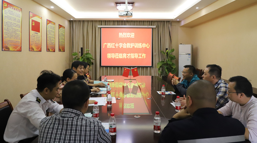 11月5日,廣西紅十?字會救護(hù)訓(xùn)練中心主任?何國?杰、廣西紅十字基金會項(xiàng)目部部長覃超蕓、救護(hù)訓(xùn)練中心主?任助?理饒斐、救?護(hù)訓(xùn)?練中心柳?州工作站站長張郁?林一行蒞臨育才考察指導(dǎo),集團(tuán)聯(lián)合黨委書記、董事長蔣華,聯(lián)合黨委委員、培訓(xùn)學(xué)院副院長趙彬陪同考察座談。