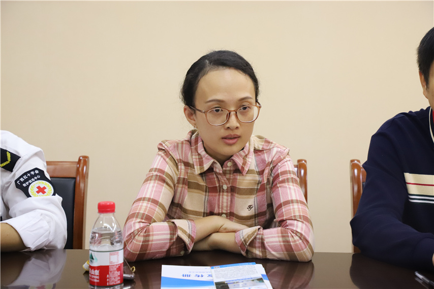 ▲廣西紅十字基金會項(xiàng)目部部長覃超蕓座談交流