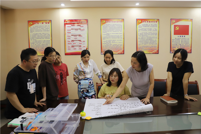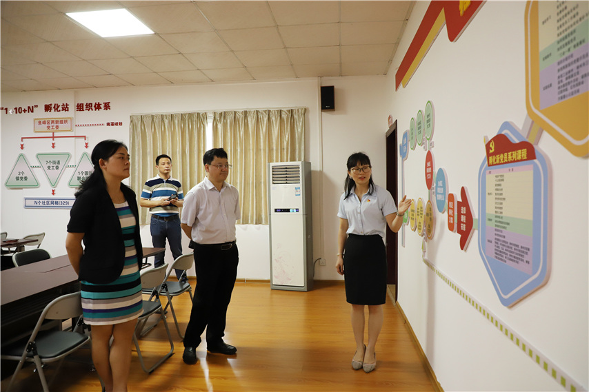 ▲市委組織部副部長宋軍(右二)、魚峰區(qū)委常委、組織部部長彭婧(左一)聽取匯報(bào)