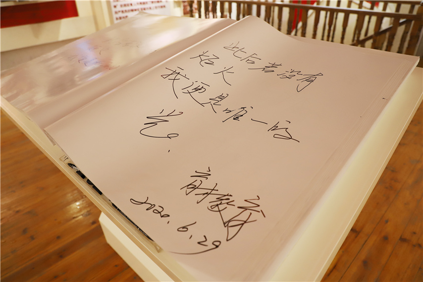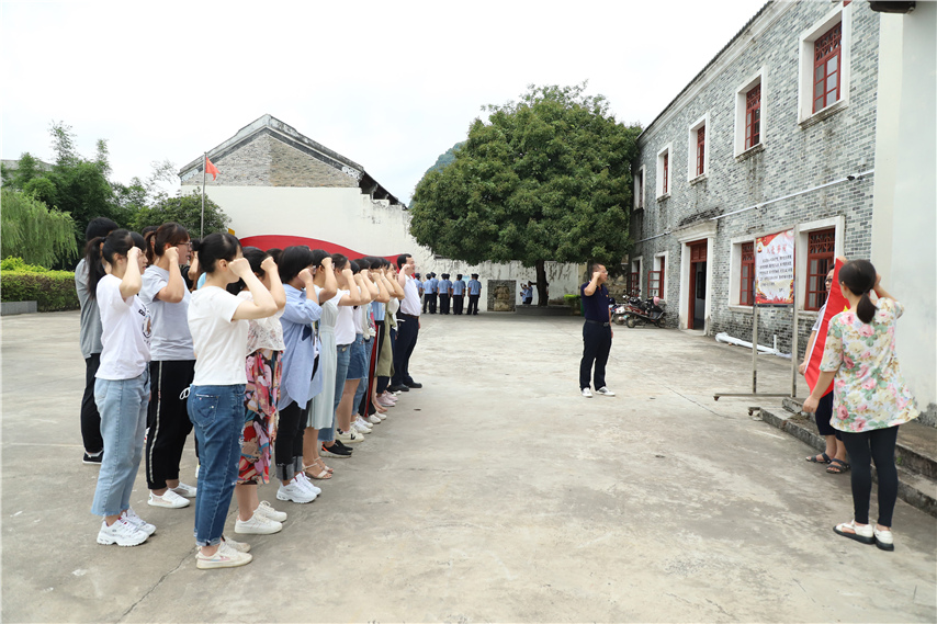 在“成團(tuán)會議舊址”前,全體黨員在蔣華書記的領(lǐng)誓下,莊嚴(yán)地舉起右拳,重溫入黨誓詞:“我志愿加入中國共產(chǎn)黨,擁護(hù)黨的綱領(lǐng)……”,表達(dá)對革命先烈的敬意及對黨忠誠的決心。