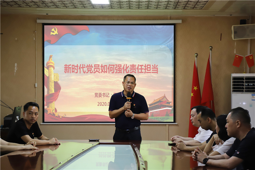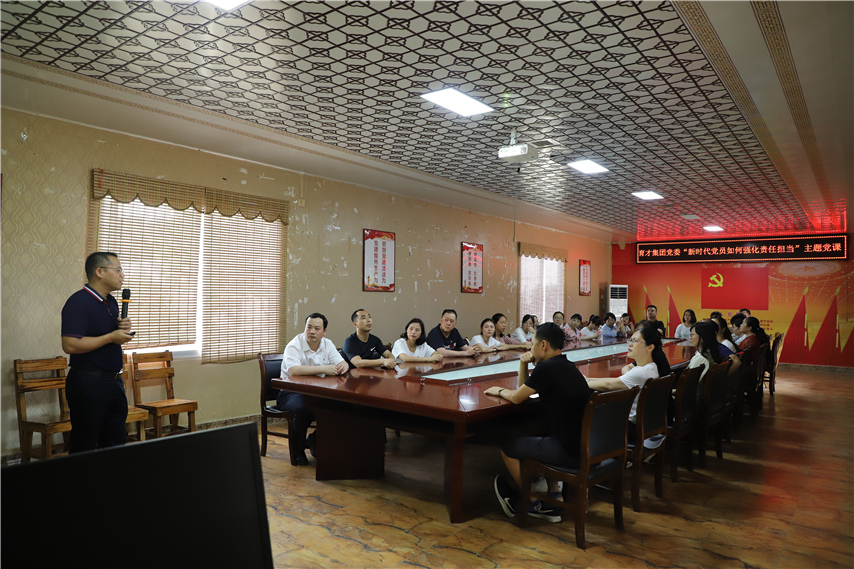 蔣華書記以《新時代黨員如何強(qiáng)化責(zé)任擔(dān)當(dāng)》為題,從“什么是共產(chǎn)黨員的擔(dān)當(dāng)”、“敢于擔(dān)當(dāng)負(fù)責(zé)是從嚴(yán)治黨的現(xiàn)實選擇”、“共產(chǎn)黨員始何做到敢于擔(dān)當(dāng)負(fù)責(zé)”等三個方面,給全體黨員上了一堂生動的黨課。他要求全體黨員要時刻牢記共產(chǎn)黨員身份,展現(xiàn)共產(chǎn)黨員本色,面對大是大非要敢于亮劍,面對矛盾要敢于迎難而上,面對危機(jī)要敢于挺身而出、面對問題要敢于擔(dān)當(dāng),充分發(fā)揮共產(chǎn)黨員的先鋒模范作用,為集團(tuán)的發(fā)展作出應(yīng)有的貢獻(xiàn)和力量。