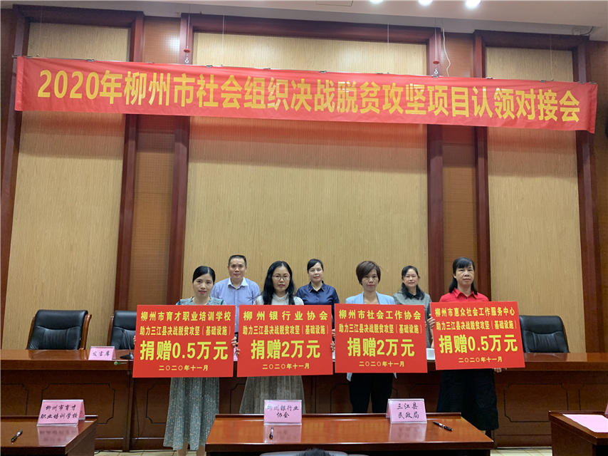 11月20日,柳州市民政局召開2020年柳州市社會組織決戰(zhàn)脫貧攻堅項目認領(lǐng)對接會。會上,集團旗下培訓(xùn)學(xué)校與三江縣民政局簽訂《脫貧攻堅項目(對口支援)意向書》,對三江縣林溪鎮(zhèn)冠洞村冠小屯關(guān)心留守老人愛心項目進行認領(lǐng),捐贈項目資金5000元,助力打贏脫貧攻堅收官之戰(zhàn)。