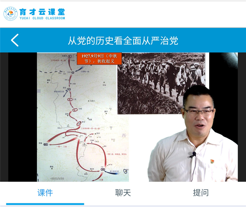 為貫徹落實(shí)全面從嚴(yán)治黨,深入推進(jìn)黨史學(xué)習(xí)教育,激發(fā)兩新組織黨員學(xué)習(xí)黨史的熱情,3月10日上午,魚峰區(qū)兩新組織黨工委運(yùn)用育才“云課堂”開展了2021年第一期黨課,邀請(qǐng)廣西柳州鋼鐵集團(tuán)公司黨校副教授黃宗科為魚峰區(qū)兩新組織黨員干部上了一堂題為《從黨的歷史看全面從嚴(yán)治黨》的直播黨課。