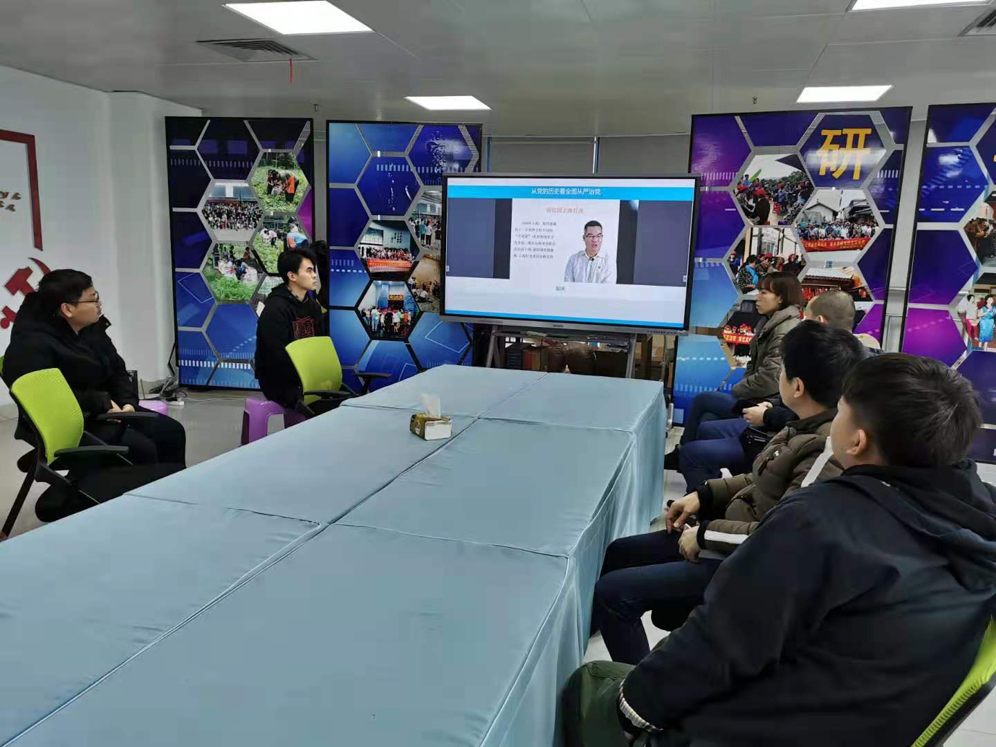 ▲集團(tuán)黨委組織黨員觀看直播黨課學(xué)習(xí)