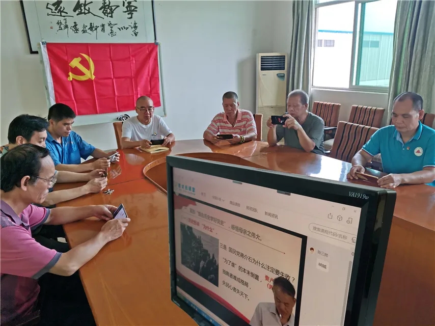 ▲柳州潮汕商會黨支部黨員觀看黨課學習