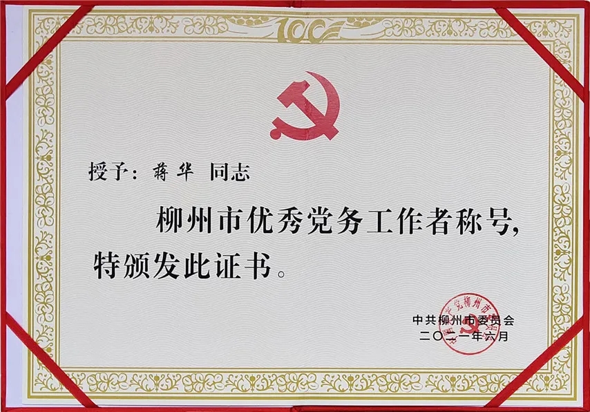 集團黨委書記蔣華獲評柳州市“優(yōu)秀黨務(wù)工作者”