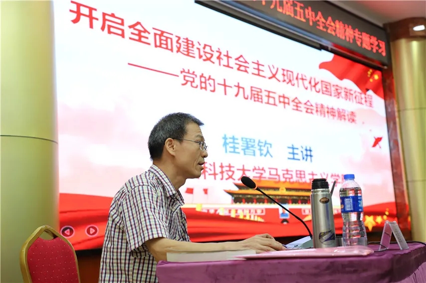 廣西科技大學(xué)馬克思主義學(xué)院桂署欽教授作《開啟全面建設(shè)社會(huì)主義現(xiàn)代化國家新征程——黨的十九屆五中全會(huì)精神解讀》授課