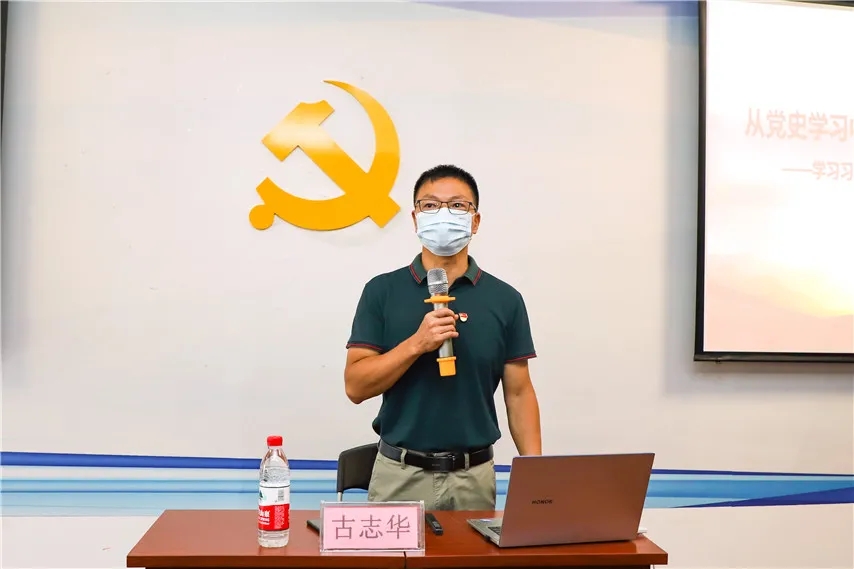 ▲古志華副教授以《以史為鑒,開創(chuàng)未來,向第二個百年奮斗目標(biāo)進(jìn)軍——學(xué)習(xí)習(xí)近平總書記“七一”重要講話精神》為題進(jìn)行授課