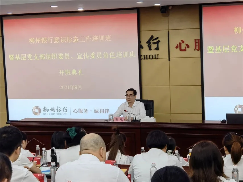 9月15日,由柳州銀行主辦,魚峰區(qū)兩新組織黨校承辦的“柳州銀行2021年意識形態(tài)工作培訓(xùn)班暨基層黨支部組織委員、宣傳委員角色“培訓(xùn)班,在柳州銀行培訓(xùn)中心舉行開班典禮,廣西柳州市金融投資發(fā)展集團有限公司黨委書記、董事長,柳州銀行股份有限公司黨委書記、董事長、行長謝斌出席開班儀式,本次培訓(xùn)班為期2天,柳州銀行84名優(yōu)秀黨員干部參加了培訓(xùn)。