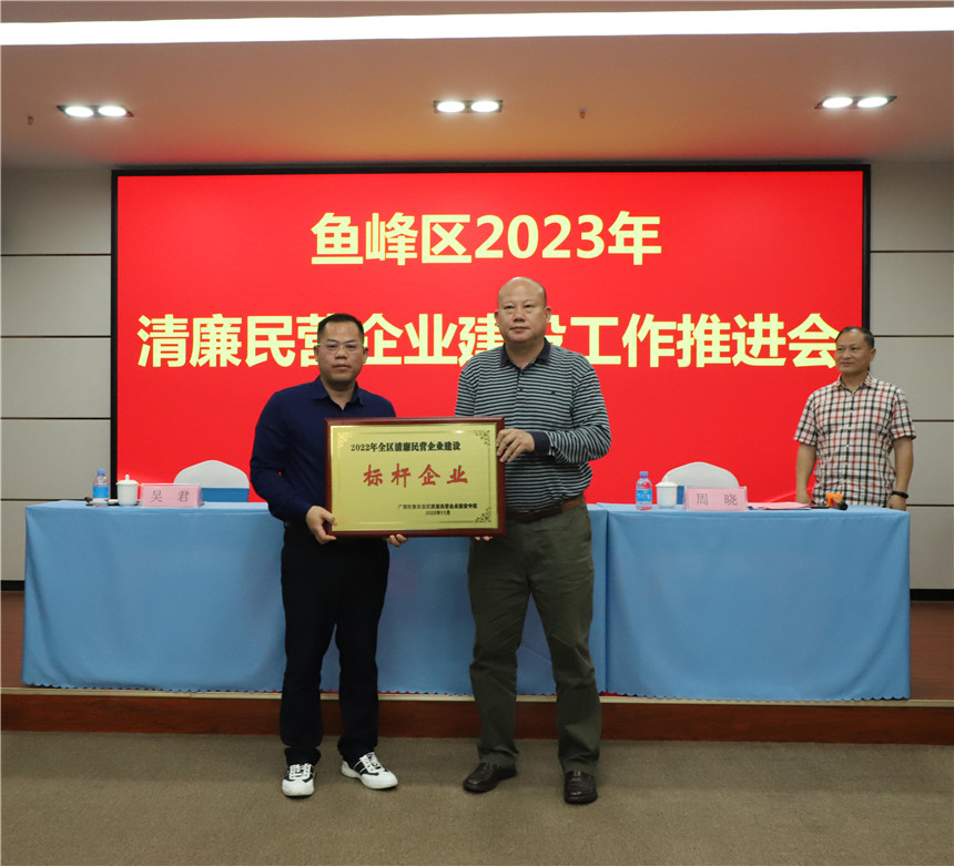 會(huì)上,魚峰區(qū)政協(xié)副主席、工商聯(lián)主席戴翔,魚峰區(qū)委統(tǒng)戰(zhàn)部副部長(zhǎng)、工商聯(lián)黨組書記周曉為獲得魚峰區(qū)清廉民營(yíng)企業(yè)建設(shè)標(biāo)桿企業(yè)的企業(yè)頒發(fā)獎(jiǎng)牌,我集團(tuán)也是獲此殊榮的企業(yè)之一。