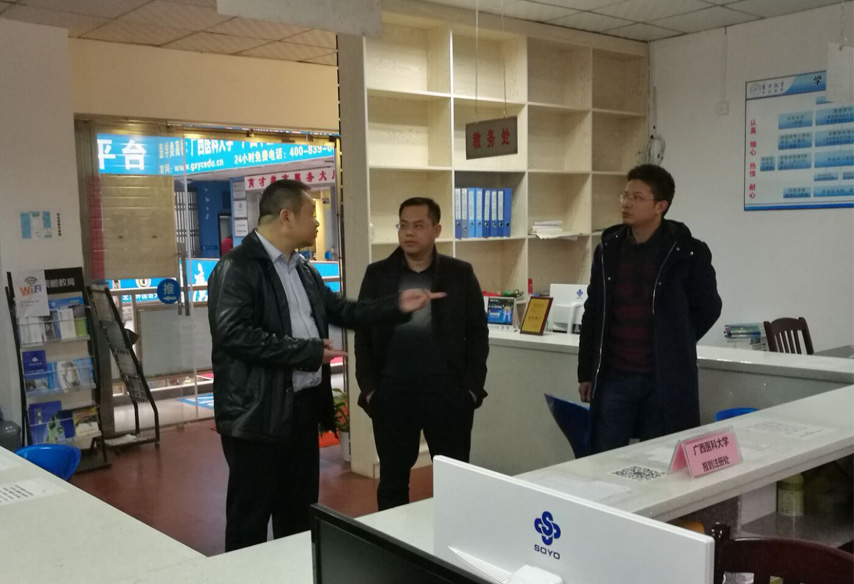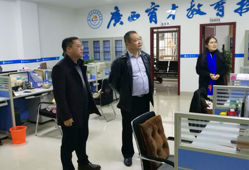 2月14日,廣西電大趙嘯海副校長(zhǎng)帶隊(duì)到育才教育柳州總部檢查指導(dǎo),趙副校長(zhǎng)參觀了育才的辦學(xué)環(huán)境,聽取了育才負(fù)責(zé)人蔣華老師的匯報(bào),對(duì)育才的規(guī)范辦學(xué)表示滿意。