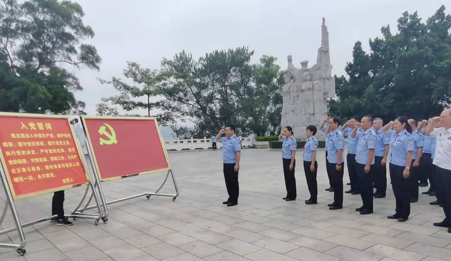 ?早?家整裝待發(fā)來到百?起義紀(jì)念碑前,向革命先烈敬獻(xiàn)花籃,瞻仰革命烈士紀(jì)念碑,深切緬懷?命先烈。隨后,全體?員在紀(jì)念碑前莊嚴(yán)宣誓,重溫了?黨誓詞和?警誓詞,牢記對(duì)黨和??的忠誠(chéng)之?。