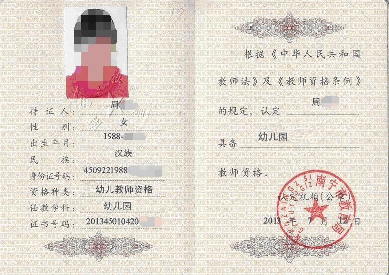 廣西師大專科畢業(yè)證樣式 | 教師資格證樣式 |