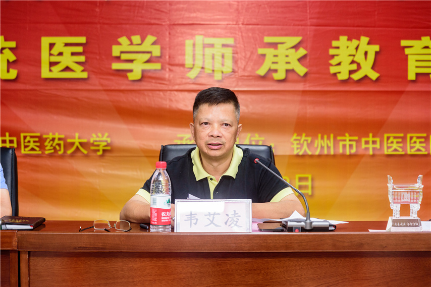 ▲廣西中醫(yī)藥大學(xué)成教院院長(zhǎng)韋艾凌教授發(fā)表講話