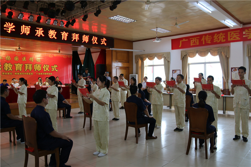 ▲防城港市衛(wèi)生健康委副調(diào)研員龐衛(wèi)國出席拜師儀式