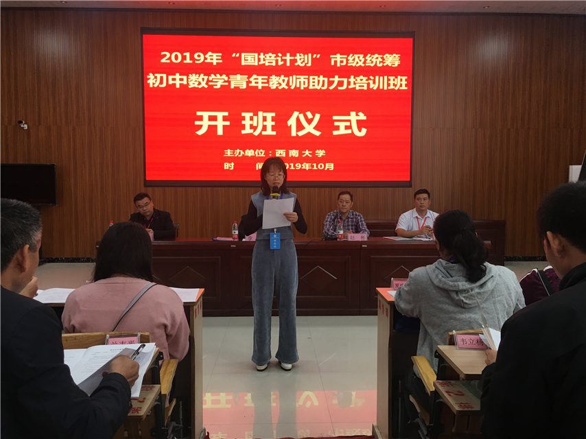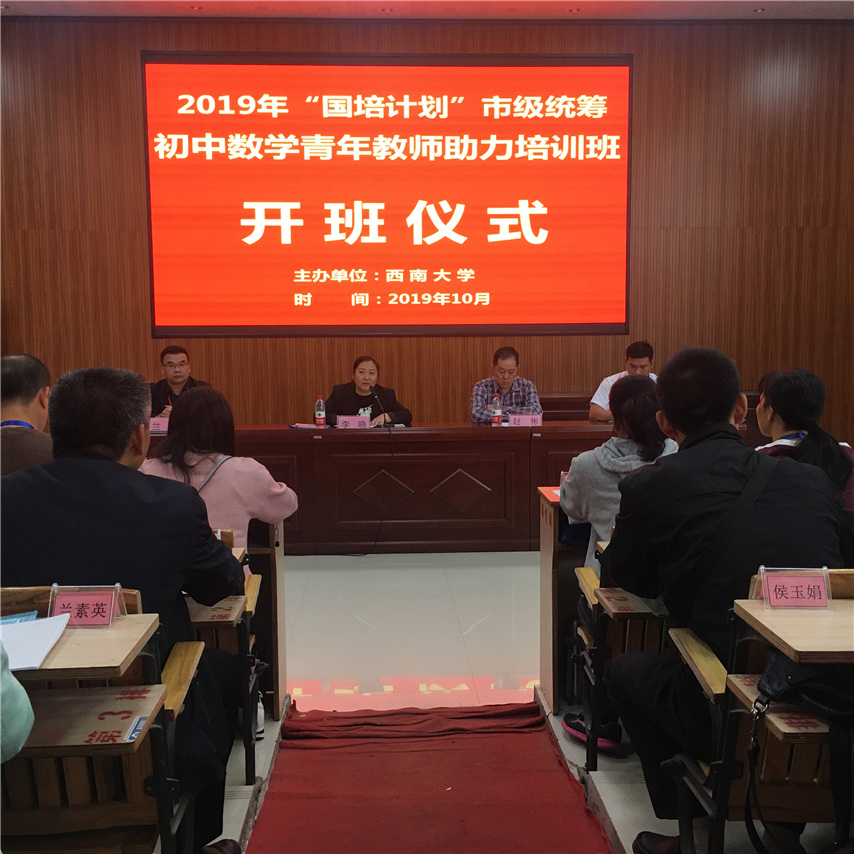 10月18日,由西南大學(xué)網(wǎng)絡(luò)與繼續(xù)教育學(xué)院主辦、柳州市育才職業(yè)培訓(xùn)學(xué)校承辦,為期3天的柳州市2019年“國(guó)培計(jì)劃”市級(jí)統(tǒng)籌——柳城縣初中數(shù)學(xué)青年教師助力培訓(xùn)班在柳城縣實(shí)驗(yàn)中學(xué)正式開班。集團(tuán)聯(lián)合黨委委員、培訓(xùn)學(xué)院副院長(zhǎng)趙彬,柳州市教師培訓(xùn)與學(xué)生素質(zhì)教育中心李曉老師以及來自柳城縣各鄉(xiāng)鎮(zhèn)的60余名初中數(shù)學(xué)青年教師參加了開班儀式,儀式由培訓(xùn)學(xué)院主任蘭霄主持。