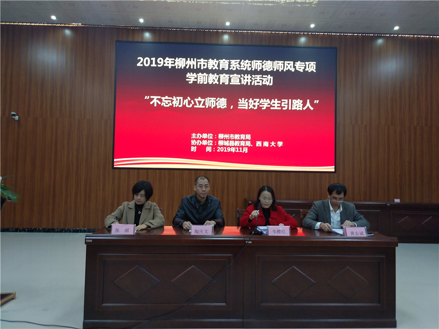 近日,“不忘初心立師德,當好學生引路人”2019年柳州市教育系統(tǒng)師德師風五縣巡回宣講活動順利結(jié)束。通過宣講活動,推動教師成為先進思想文化的傳播者、黨執(zhí)政的堅定支持者、學生健康成長的指導者。通過宣講活動,大力弘揚社會主義核心價值觀,激勵廣大教師不忘初心,立德樹人,人人爭當“最美教師”,為培養(yǎng)擔當民族復興大任的時代新人作出應有的貢獻。2019年柳州市“國培計劃”市級統(tǒng)籌教師培訓由柳州市育才職業(yè)培訓學校承辦。