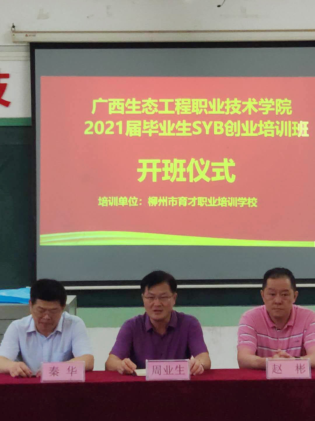 7月10日,由?柳州市育才職業(yè)培訓學校承辦的廣西生態(tài)工程職業(yè)技術學院2021屆SYB畢業(yè)生創(chuàng)業(yè)培訓班在該校第一教學樓順利開班。廣西生態(tài)工程職業(yè)技術學院繼續(xù)教育與培訓學院院長周業(yè)生、副院長秦華出席開班儀式上并做重?要講話,集團黨委委員、培訓學院院長趙彬及第一期學員參加了開班儀式。本次培?訓共10期,培訓學員300余人。