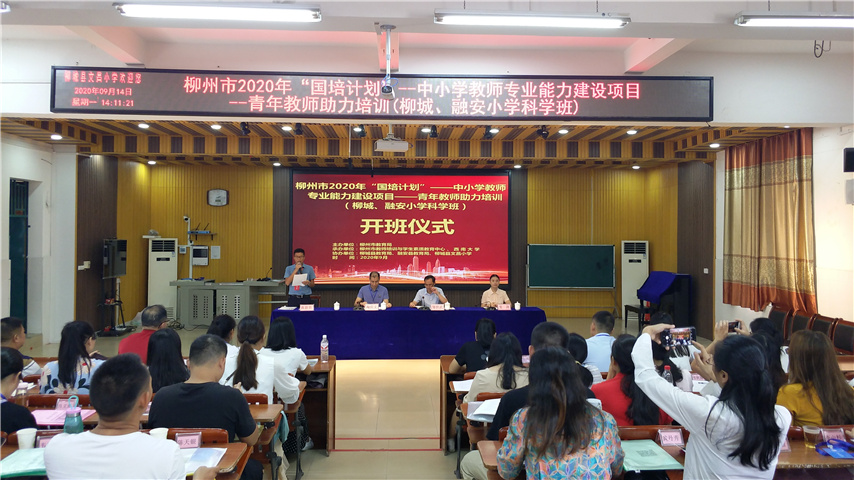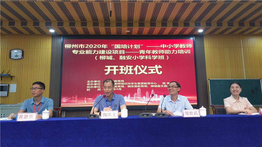 9月14日???,2020年???“???國???????培???計???劃???”???市???????級???統(tǒng)???????籌??青???年???教???師???助???力???培???訓(xùn)???(柳城縣、融安縣小學(xué)科學(xué)班???)在柳城縣順利開???????班???,???柳州市教師培訓(xùn)與學(xué)生素質(zhì)教育中心陶慶文主任出???席???開???班???儀???式???并?做?講?話?,?來?自?柳城縣、融安縣?初中?的50???余名???老???????師???參???????加???了此次?培訓(xùn)?。