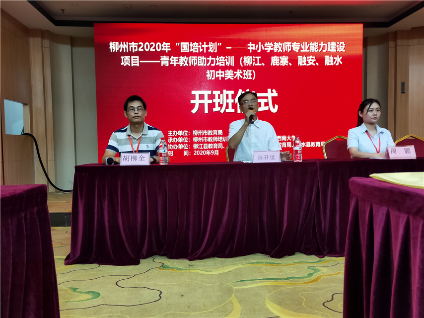 9月14日???,2020年???“???國???????培???計???劃???”???市???????級???統(tǒng)???????籌??青???年???教???師???助???力???培???訓(xùn)???(柳江區(qū)、鹿寨縣、融安縣、融水縣初中美術(shù)班???)在柳州市順利??開???????班???,???柳州市教師培訓(xùn)與學(xué)生素質(zhì)教育中心陳升世主任出???席???開???班???儀???式???并?做?講?話?,?來?自?柳江區(qū)、鹿寨縣、融安縣?、融水縣初中?的50余???名???老???????師???參???????加???了此次?培訓(xùn)?。
