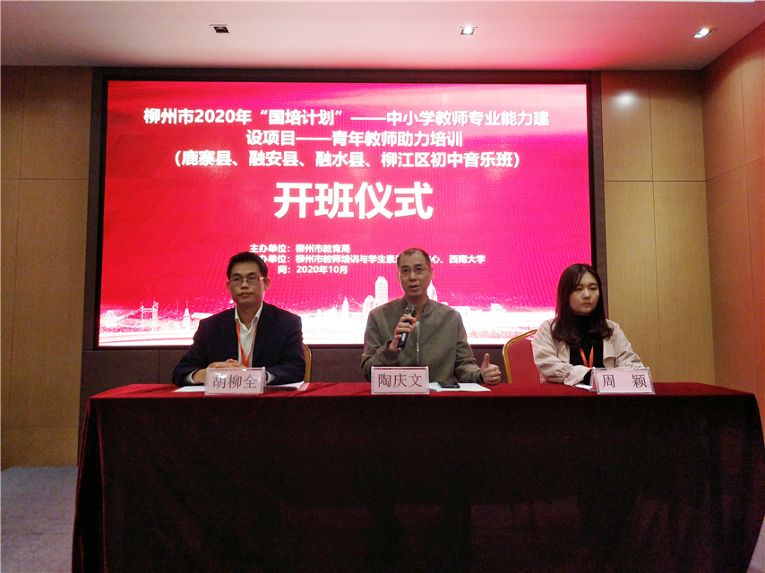 10月19日,2020年“國培?計劃”柳州市青年?教師助力培訓(xùn)(鹿寨縣、融安縣、融水縣、柳江區(qū))初中音樂班在柳州市順利開班,柳州市教師培訓(xùn)與學(xué)生素質(zhì)教育中心培訓(xùn)二室陶慶文主任出席?開班儀式并做?講話,來自鹿寨縣、融安縣、融水縣和柳江區(qū)的50余名初中音樂教師參?加了培訓(xùn)。