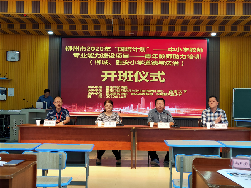 10月12日,2020年“國培?計劃”柳州市青年?教師助力培訓(xùn)(柳城縣、融安縣)小學(xué)道德與法治班在柳城縣順利開班,柳州市教師培訓(xùn)與學(xué)生素質(zhì)教育中心韋忠副主任、柳城縣教師培訓(xùn)與學(xué)生素質(zhì)教育中心王莉萍主任出席?開班儀式并做?講話,來自柳城縣和融安縣的50余名小學(xué)教師參?加了培訓(xùn)。