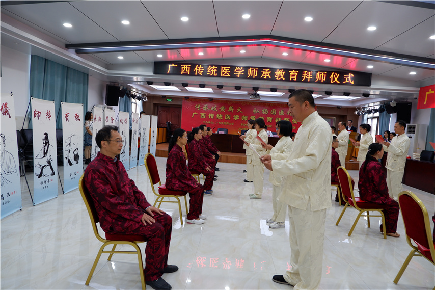 11月3日,由廣西中醫(yī)藥大學(xué)主辦,欽州市中醫(yī)醫(yī)院、廣西育才教育集團承辦的廣西傳統(tǒng)醫(yī)學(xué)師承教育第十四期師承拜師儀式在欽州市中醫(yī)醫(yī)院隆重舉行。廣西中醫(yī)藥大學(xué)直屬黨總支書記、成教院院長、博士生導(dǎo)師、二級教授韋艾凌、副院長黃瑞誠、欽州市中醫(yī)醫(yī)院副院長鄭豪芬、梁秋明、集團總校校長梁國坤以及師承班第十四期的指導(dǎo)老師和學(xué)員代表參加了儀式。