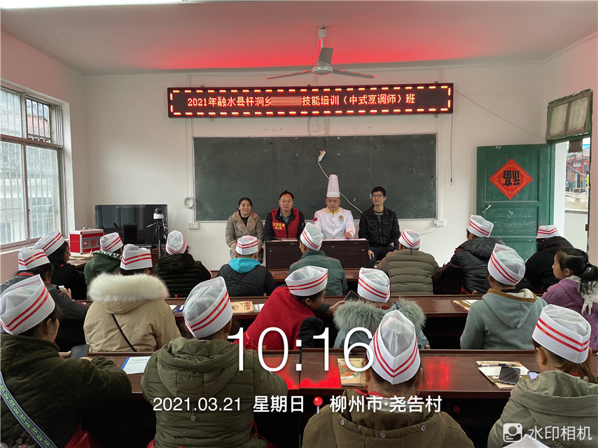3月21日,我培訓(xùn)學(xué)校2021年004期職業(yè)技能(中式烹調(diào)師)培訓(xùn)班在融水縣桿洞鄉(xiāng)順利開班,共有40余名村民學(xué)員參加了此次培訓(xùn)!讓農(nóng)村轉(zhuǎn)移就業(yè)勞動者和貧困戶人員掌握一技之長,為鄉(xiāng)村振興貢獻一份力量!
