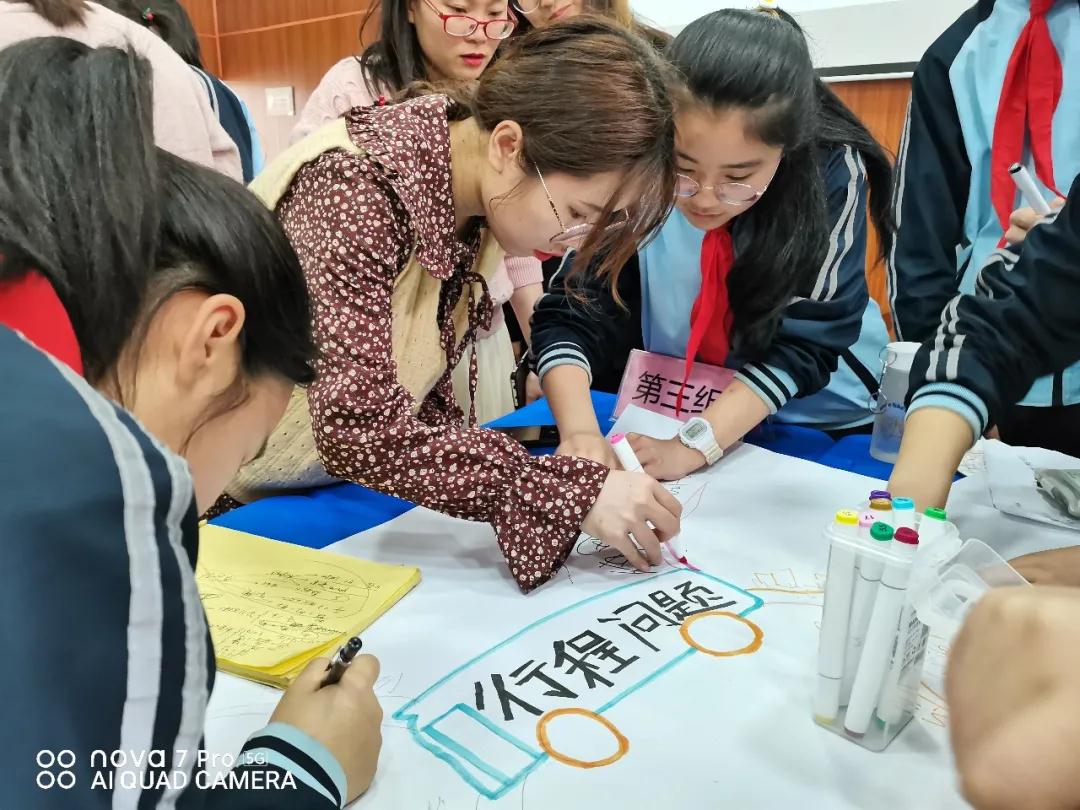 操練繪制思維導(dǎo)圖才是知行合一,學(xué)以致用的關(guān)鍵。七年級和八年級師生分成小組,分別以“荷花”與“行程問題”為主題,在限定時(shí)間內(nèi)師生協(xié)作完成思維導(dǎo)圖的創(chuàng)作。