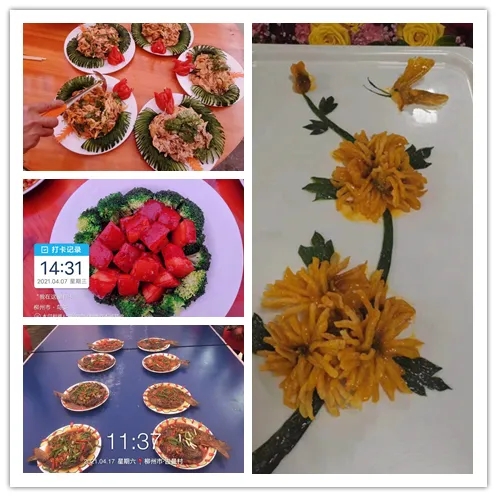 學(xué)員們把學(xué)到的技能發(fā)揮得淋漓盡致,一盤盤造型別致及色、香、味俱全的菜品佳肴讓人垂涎欲滴。