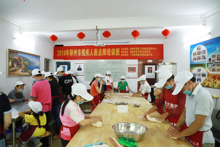 6月19日,為期5天的2018年柳州市殘疾人面點(diǎn)師培訓(xùn)班在育才柳州總部開班,培訓(xùn)班由柳州市殘疾人勞動(dòng)就業(yè)服務(wù)中心主辦、柳州市育才職業(yè)培訓(xùn)學(xué)校承辦、廣西民邦餐飲管理有限公司協(xié)辦,來自柳州各城區(qū)的30余名殘疾人參加了培訓(xùn)。