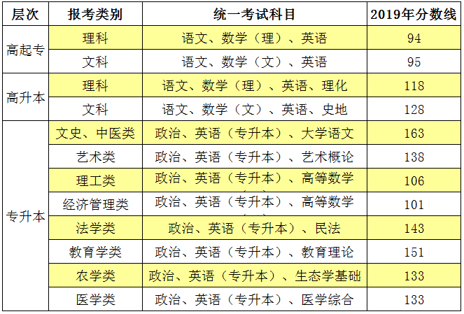 廣西2019年成人高校招生錄取最低控制分?jǐn)?shù)線(xiàn)
