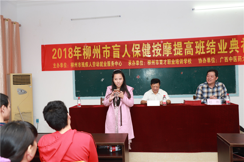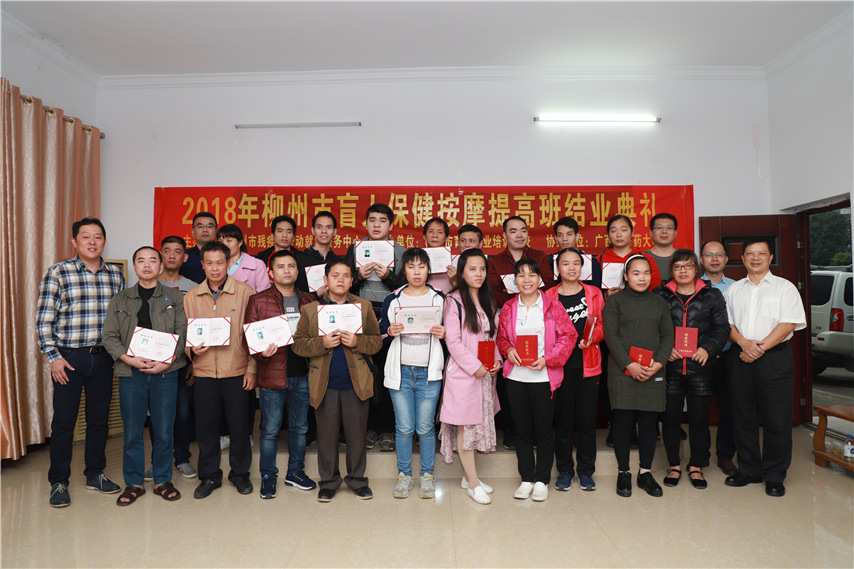 10月25日,由柳州市殘疾人勞動(dòng)就業(yè)服務(wù)中心主辦、柳州市育才職業(yè)培訓(xùn)學(xué)校承辦、廣西中醫(yī)藥大學(xué)協(xié)辦、為期十天的2018年柳州市盲人按摩保健提高班,在柳江區(qū)就業(yè)服務(wù)中心一樓順利結(jié)業(yè)。參加培訓(xùn)班的20余名殘疾人學(xué)員通過(guò)培訓(xùn)和考核,完成規(guī)定學(xué)時(shí)和課程學(xué)習(xí),獲得了廣西中醫(yī)藥大學(xué)繼續(xù)教育學(xué)院《盲人保健按摩提高班結(jié)業(yè)證書(shū)》。
