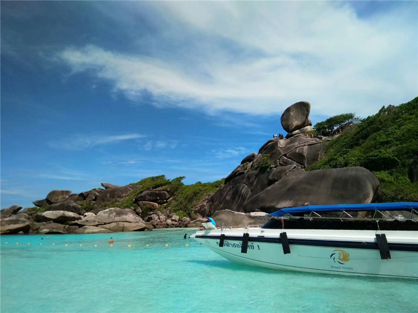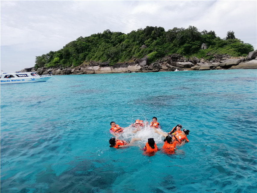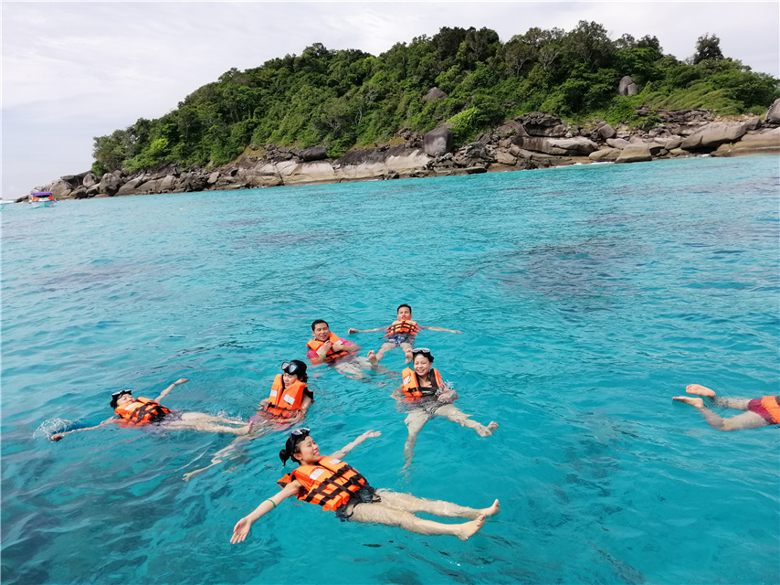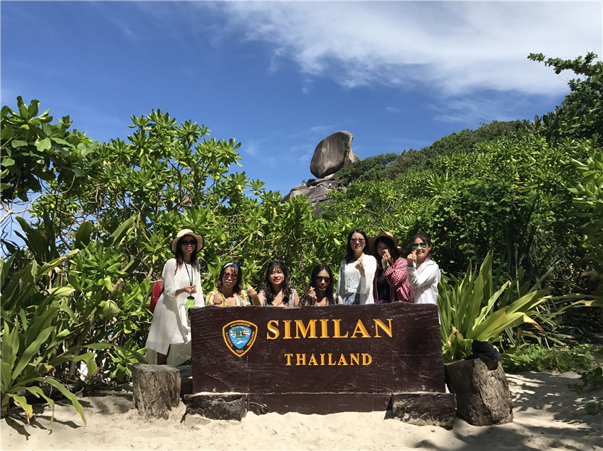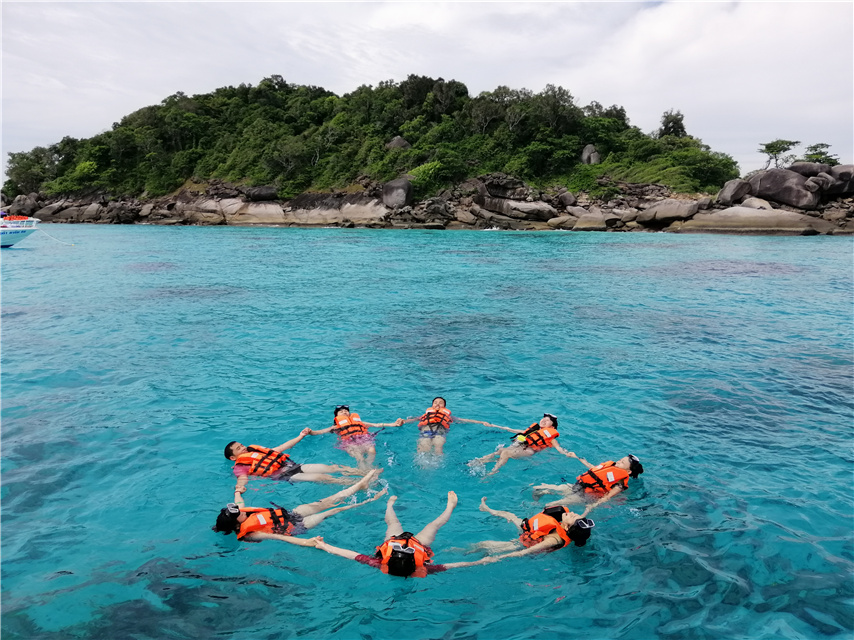 在普吉島,團隊體驗了當?shù)氐娘L(fēng)土人情,還分別登上了有“珊瑚花園”之稱的潛水勝地斯米蘭島以及珊瑚島,在斯米蘭標志性的風(fēng)動石下合影留念。大家在湛藍色的海水里浮潛觀魚,一起開心地“花樣游泳”,在這旖旎的海島風(fēng)光里流連忘返,并從旅行當中收獲了新的感悟,讓一切變得更有意義。