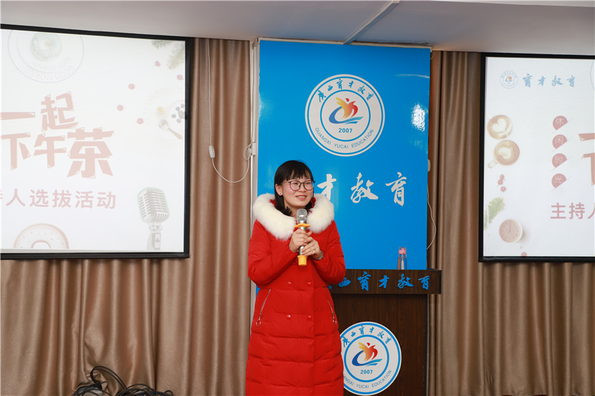 1月2日下午,育才集團內(nèi)部主持人選拔活動在柳州本部409室順利舉行,集團黨總支書記、董事長蔣華、副總經(jīng)理、副校長王志、副總經(jīng)理、副校長李彩梅、總經(jīng)理助理王麗、來自柳州本部、科大辦和在柳的各分校老師共60余人參加了活動。