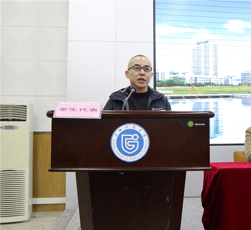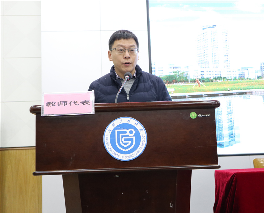 來自機械與交通學院李健教授代表老師進行發(fā)言,他向同學們做出了嚴謹教學、用心服務的承諾。表示要認真按照學校的教學制度和教學計劃進行教學管理,努力做好教學工作,希望同學們相互幫助,共同成長,順利地完成學習任務。