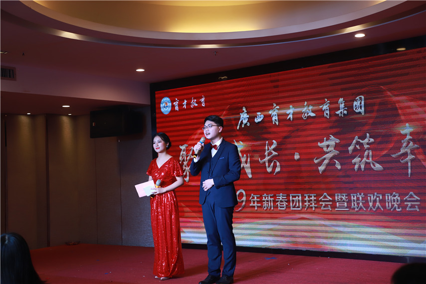 1月25日晚,廣西育才教育集團(tuán)2019年新春團(tuán)拜會暨聯(lián)歡晚會在柳州大唐嘉宴酒店桂中總店圓滿舉行。