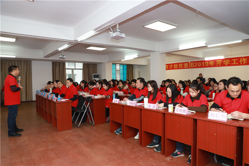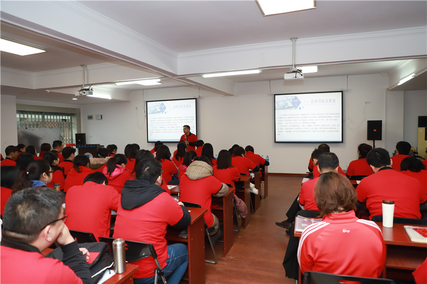 ▲會上,集團黨總支書記、董事長、總經(jīng)理、培訓學院院長蔣華作了題為《狠抓落實,推動育才新發(fā)展新跨越 》的全年工作計劃報告,對育才2019年各項工作作了總體部署,主要提出了2019年的總體發(fā)展目標,對黨建、招生、教學、培訓、財務、工會、企業(yè)文化、學工活動等版塊工作提出了新的要求。他說,2019年集團將繼續(xù)以“一顆紅心,兩翼驅(qū)動”為指導思想,以標準、效能、服務、發(fā)展為主要方向,堅持狠抓落實,深化改革,統(tǒng)一核心價值觀,以穩(wěn)定學歷教育辦學規(guī)模為前提,把工作重心轉(zhuǎn)移到非學歷教育培訓市場,打通學歷和非學歷的通道,從而推動育才新發(fā)展、新跨越。