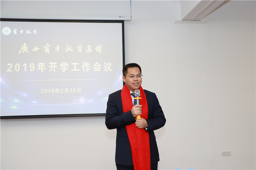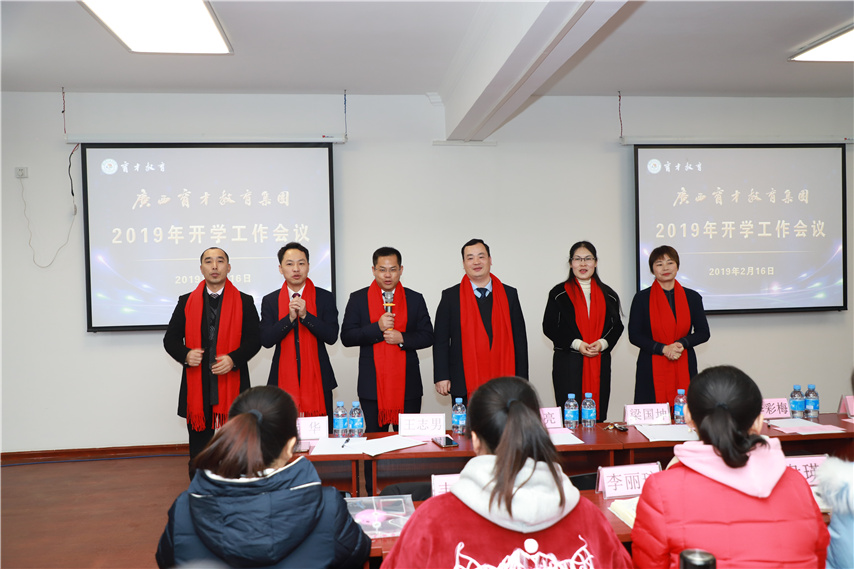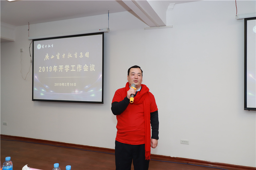 2月16日上午,廣西育才教育集團2019年開學工作會議在柳州本部隆重召開。集團黨總支書記、董事長、總經(jīng)理、培訓學院院長蔣華、總校校長梁國坤、副總經(jīng)理王志、李彩梅、蔣亮、王麗等領導以及全體教職工參加了會議,會議由副總經(jīng)理王麗主持。